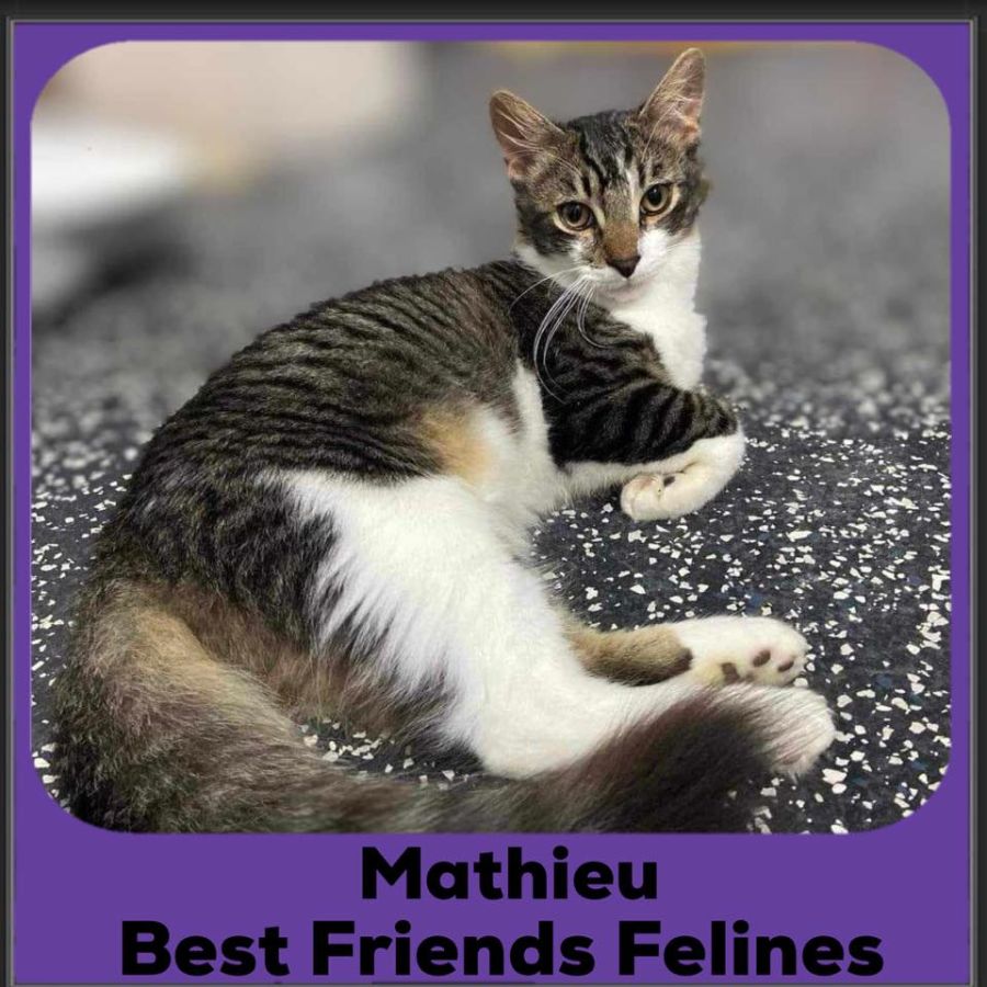 Mathieu looks like a cub with an impressive bushy tail and a cute little chirp. Mathieu is super sweet, friendly and confident. He loves to follow you everywhere like a shadow, sit with you on the sofa and give you tonnes of head bumps. Mathieu loves to play ball games and chase strings. Mathieu is a non-fussy eater and has a lion like appetite. He is happy to be picked up, LOVES pats and is the puuuurfect little companion with endless affection.