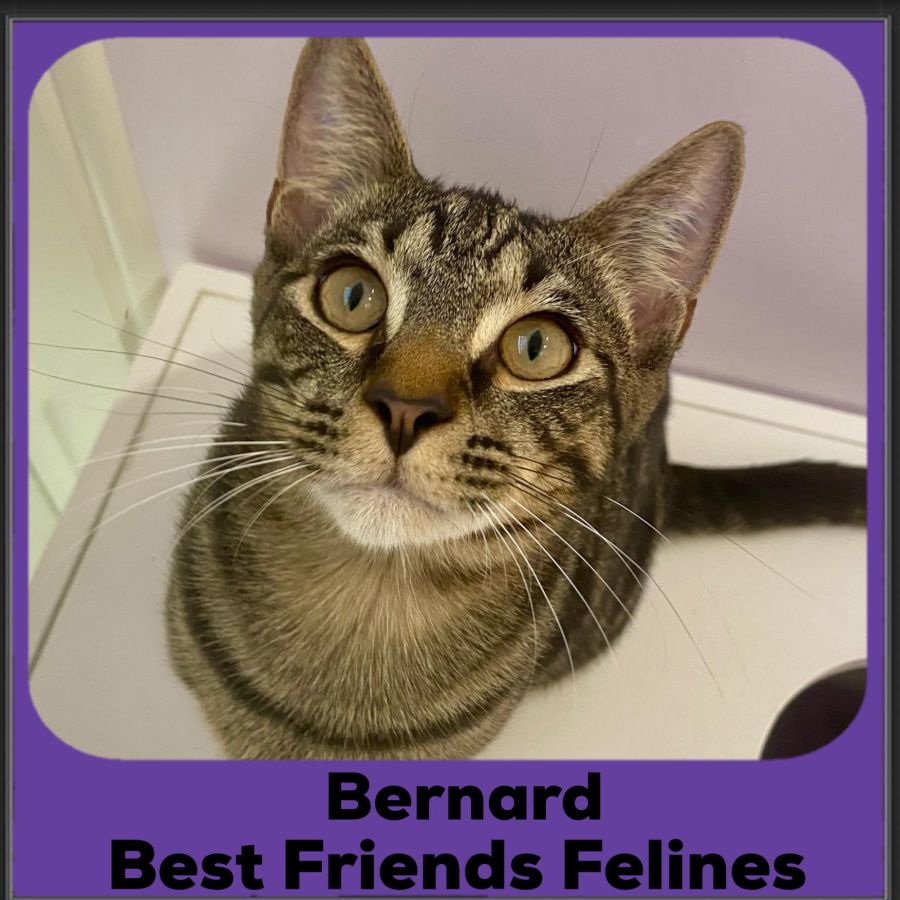 Bernard, Berni or love bug as he’s affectionately called by his foster mums is a handsome little guy with the biggest heart and the purr motor to match. His days are spent playing with his siblings, snuggling up to his foster mums for cuddles and making sure he’s on hand for any spare chicken that may need eating or visitors that might need to be loved on.