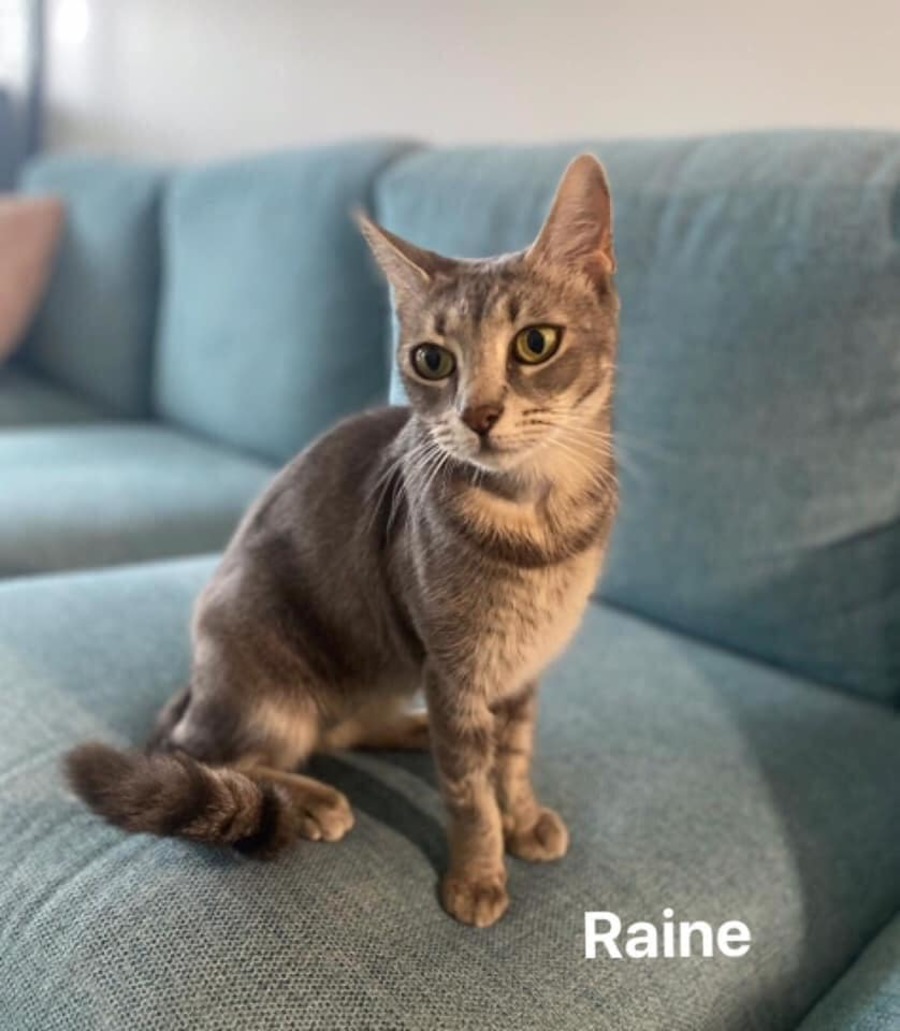 Hello, dear friend! I’m Raine, a tabby with a hint of Tortie colour in me, with a heart as soft and affectionate as my plush coat. I’m here to bring a sprinkle of sweet companionship into your life, and I promise to shower you with love and cuddles.