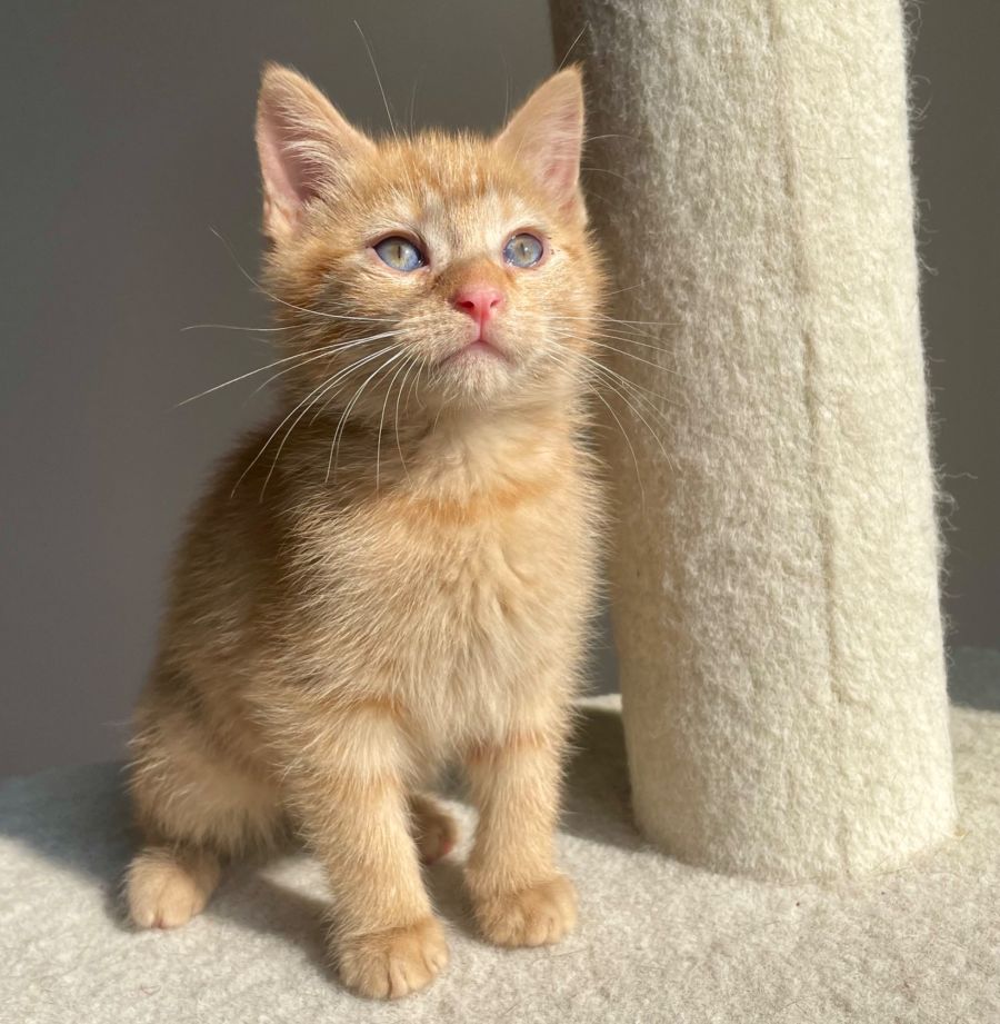Gouda is a sweet, ginger tabby with a heart as golden as his luxurious fur. His beautiful blue eyes radiate the affectionate and gentle nature he carries within himself. Gouda is an adorable purring machine who also happens to be a certified cuddle enthusiast.