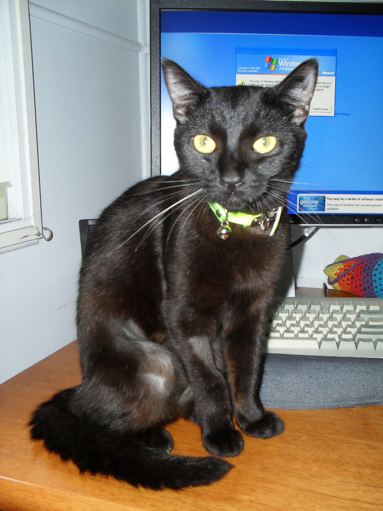 Introducing the gorgeous beautiful "sophie" a lovely companion cat. Do you want a cat that slinks around your legs in the kitchen, sits with you while you watch tv, sleeps on your bed and goes where you are. . . . Then sophie is your cat. Sophie is guessed to be about 1 year old. She came to little paws kitten rescue as a pregnant mum; she's now desexed, vaccinated, wormed and flea treated. Her babies have gone on to find forever homes and now she would like this also. She's a beautiful dark silky coated cat with amazing eyes. Her distinctive one white whisker sets her apart from the rest. She also likes to meow occassionally when you come home, talking to you about her day and how hungry she is but her meow isn't very loud at all (isn't annoying). She is so friendly and has a lovely gentle nature. Loves to be picked up and walked around the house while you talk to her about your day. A good companion to the other 3 kittens and cats in this foster home. She was initially very frightened of my kelpie x dog but now seems to be wary but 'cool' with her. She'll calmly walk past the dog and give a slight hiss (just to let the dog know she is aware) but is otherwise relaxed. I think she'd adjust to life with a dog, so long as she had gentle time to do so & high places to observe from. She is a delightful cat that would be greatly, but happily missed from foster care. She'd do well with other animals but i'm sure she'd be delighted to be the sole pet and adored accordingly. If you would like to meet sophie, contact her foster mum emma