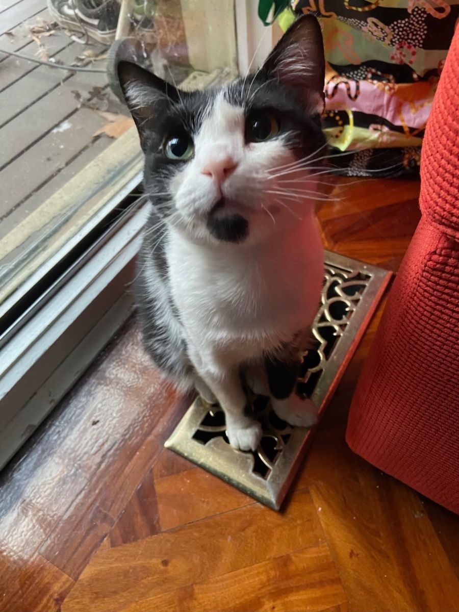 She is used to living with other cats but has also really blossomed since becoming the only cat in the household. Her gentle nature makes her perfect for a family with young kids or a retiree who's seeking a smoochy companion. She is also very low maintenance and super easy to live with.