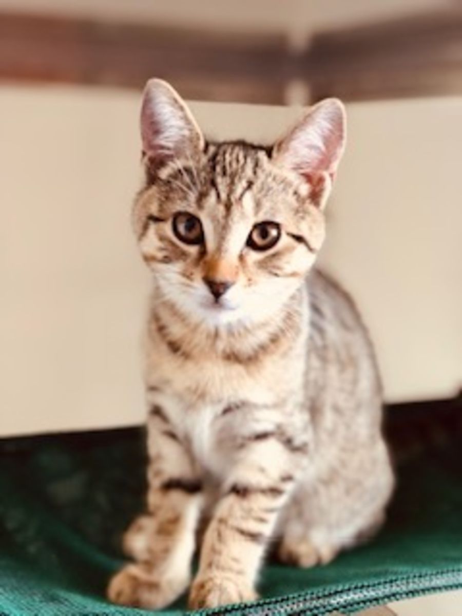 Valerie is a loveable little kitten who was born in a vet clinic after her pregnant mum was rescued from the street. She is fun-loving & very inquisitive. She has really come out of her shell in the past couple of weeks & is turning into a very affectionate, sweet girl who loves attention and loves to play. She can still be shy with strangers but warms up quickly with some one-on-one time. She is a mini-me of her affectionate mum. She seems like an adaptable kitten who would suit most households.