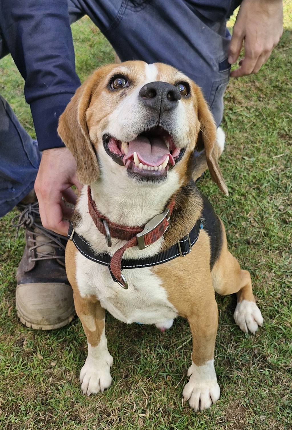 Ori was surrendered to the shelter after the previous owner sadly passed away. He certainly has some training on-board. He can sit and stay on cue and will come when called as long as the distractions around are low and he doesn't have to stay with you for more than a fleeting Beagle second before he is off again on another exploration.