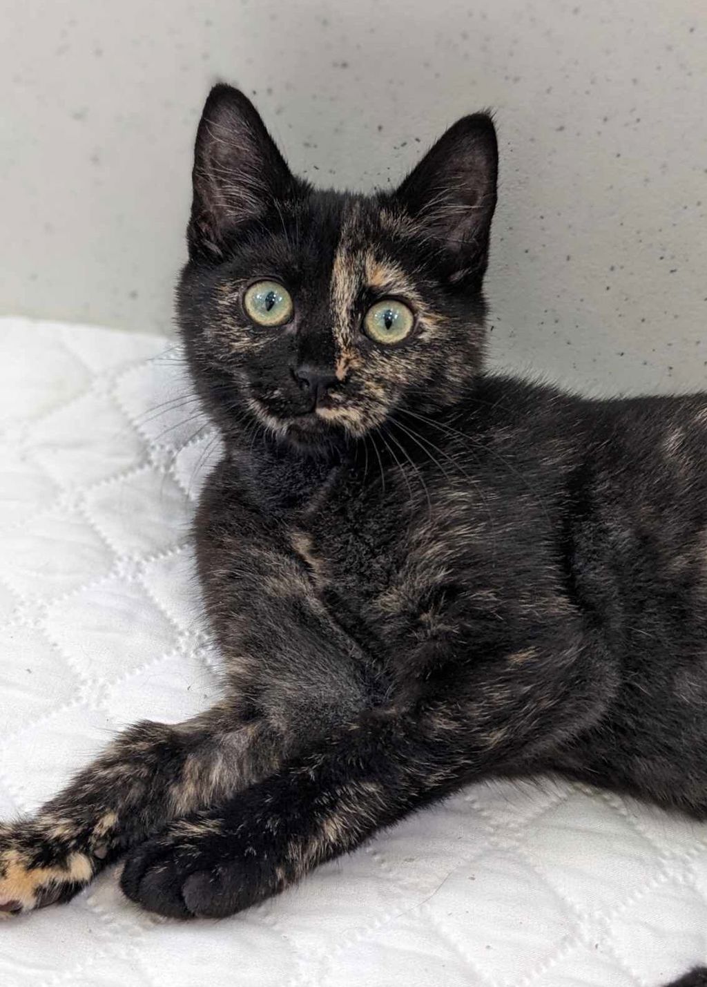 Hey there, I'm Meredith. I'm a friendly and affectionate kitten who would suit most homes! My playful paws are always ready to pounce on anything that moves. I love playing with wand toys and mysterious shadows on the wall! When I'm finished playing, I love nothing more than finding a warm lap to curl up in.