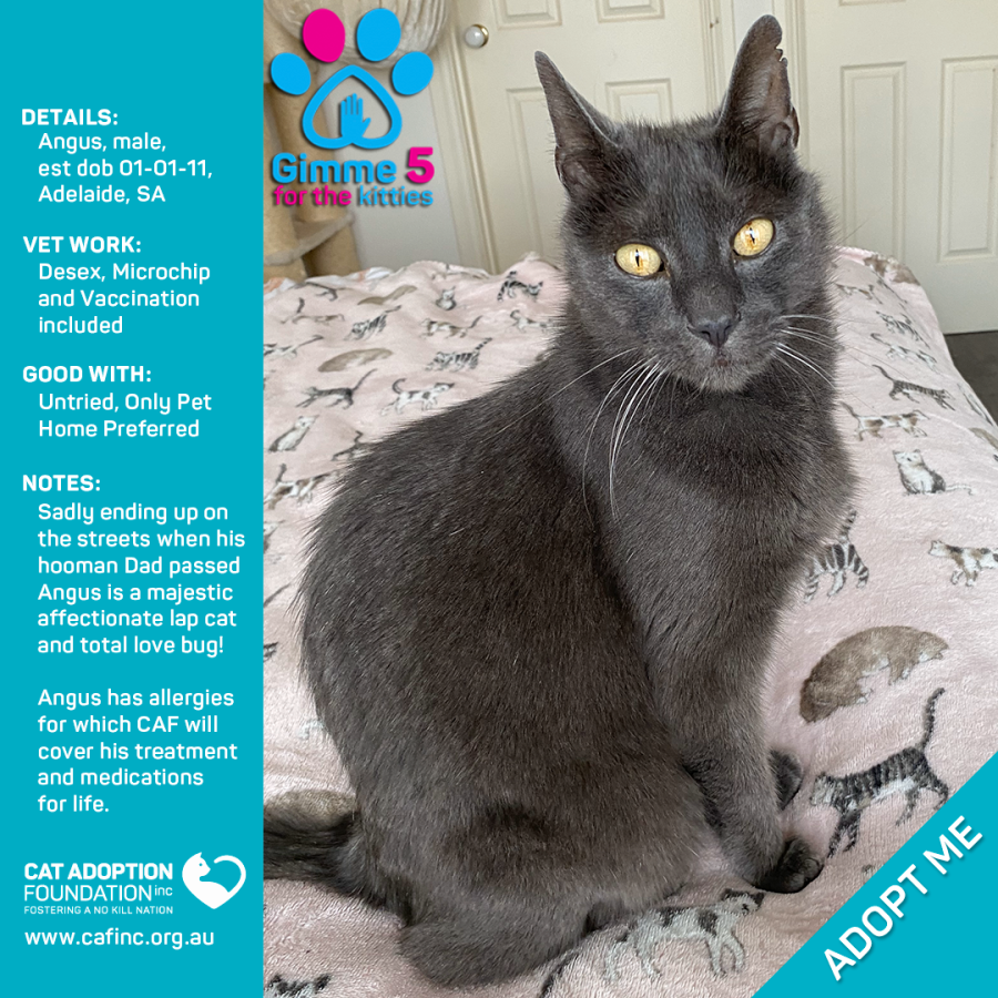 Donate to Angus Only $39 Limited Time! at Cat Adoption Foundation Incorporated via Shout