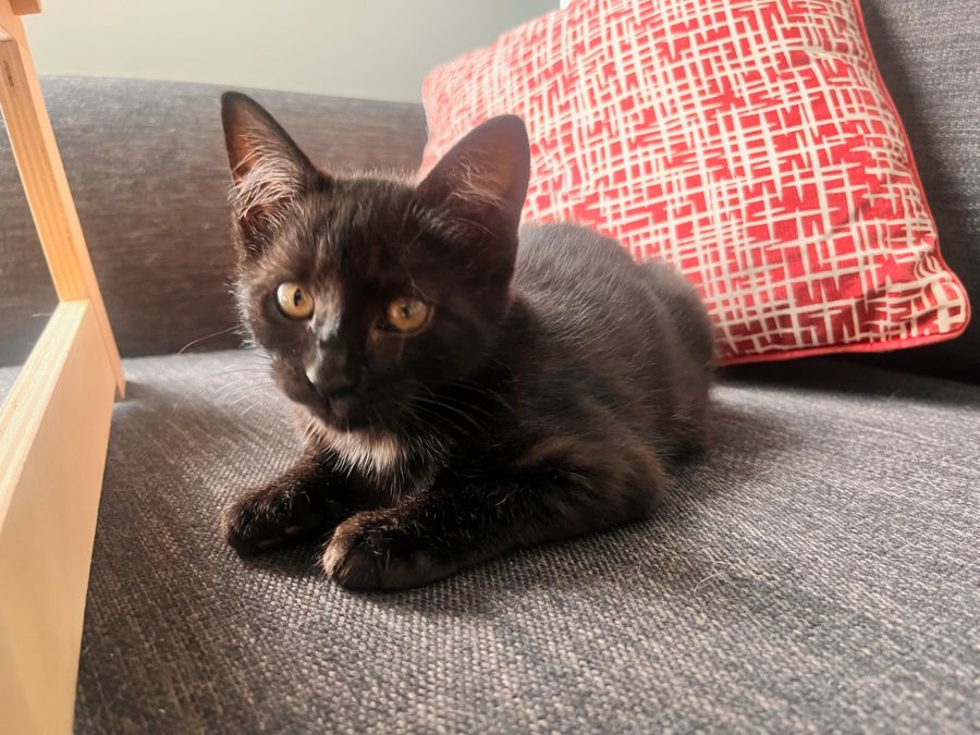 Meet Chia...She's a beautiful chocolate / black / slightly ginger girl, also the most friendly, playful and charming little kitten. She loves evening snuggles and exploring. A big fan of screens, she like playing phone games and watching TV. She's a big helper and you'll find her ready to assist you at anytime, and will let you know when she’s ready to be picked up.