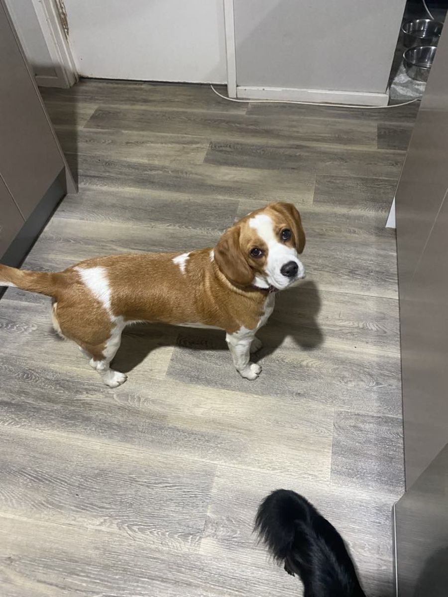 Honey has the traits of both breeds. She has the sweet cavalier nature & the determination of the beagle.