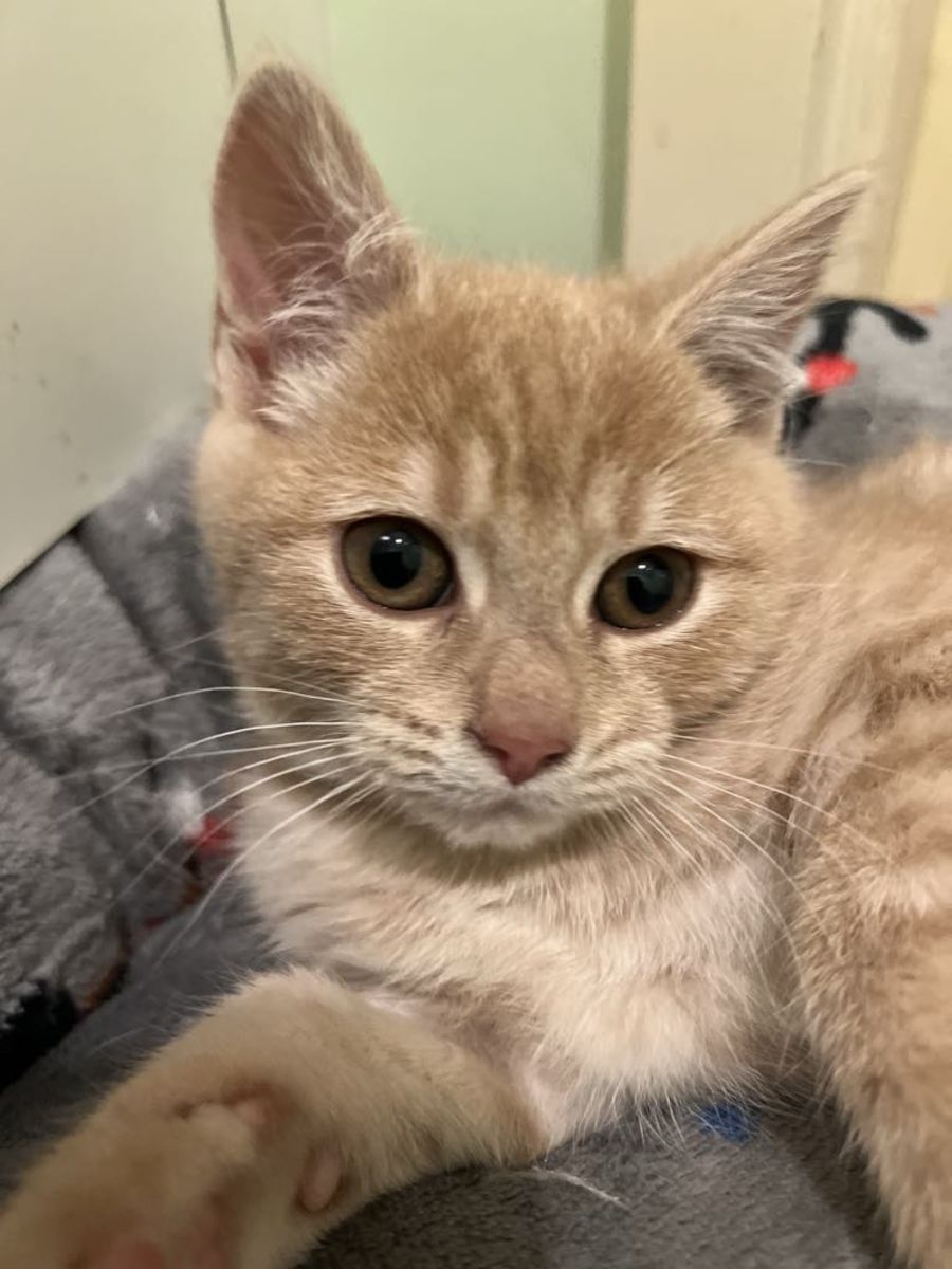 Kanel is a charming Domestic Shorthair kitten with a coat that's tinged with pink. His playful antics and curious nature will keep you entertained for hours on end. Whether he's playing with toys or cuddling up in your lap, Kanel is always full of energy and affection. With his adorable face and endearing personality, he's sure to steal your heart from the moment you meet him.