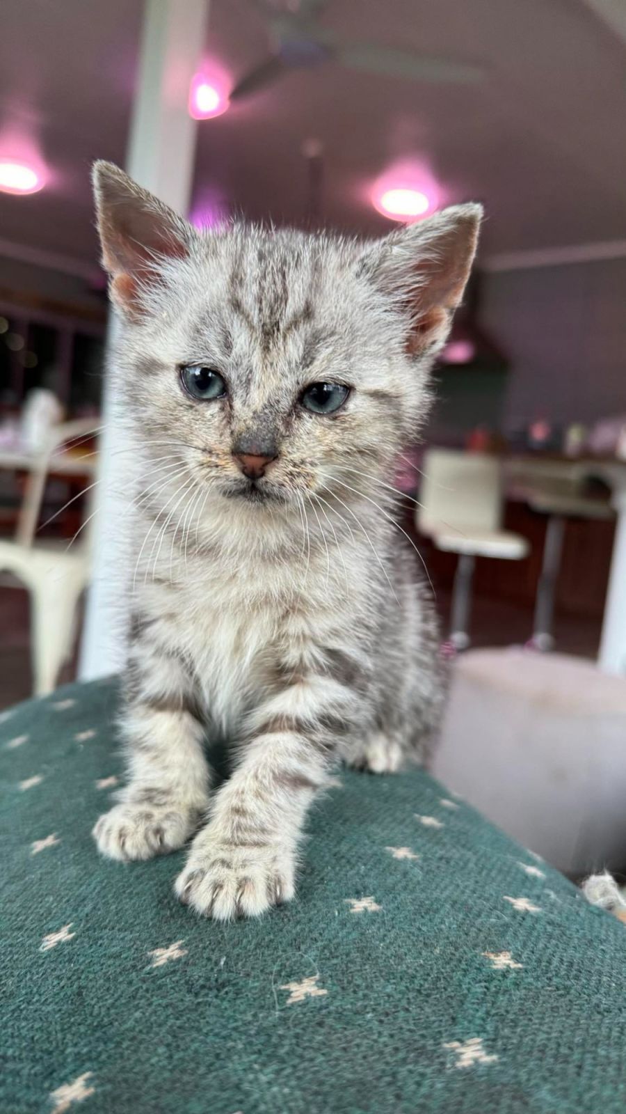 Meet Cheri, a six-week-old sweetheart all set to fill your life with pure love and joy. Ready for pre-adoption, Cheri is eager to captivate you with his endearing personality. Born with an unstoppable spirit, he didn't have the most comfortable start in life, but this little feline has thrived against the odds, blossoming into a lively and affectionate creature.