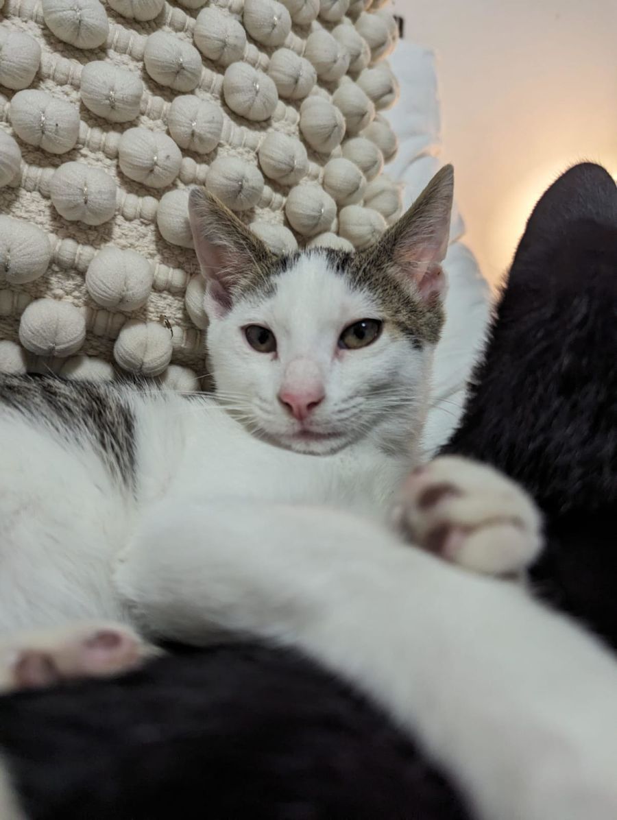 This mischievous little boy has multiple personalities from the floppy cuddles purring away that will make your heart melt to his energetic spurts of climbing up his foster cage to find an escape route for his other 2 siblings. He loves to play with anything he can get his little paws on, wandtoys are his favourite but a scrunched up piece of paper works just as well. This handsome young chappy will bring so much laughter and joy to anyone’s life, he needs his forever home toexpress and furrrrrfill his golden heart and personality.