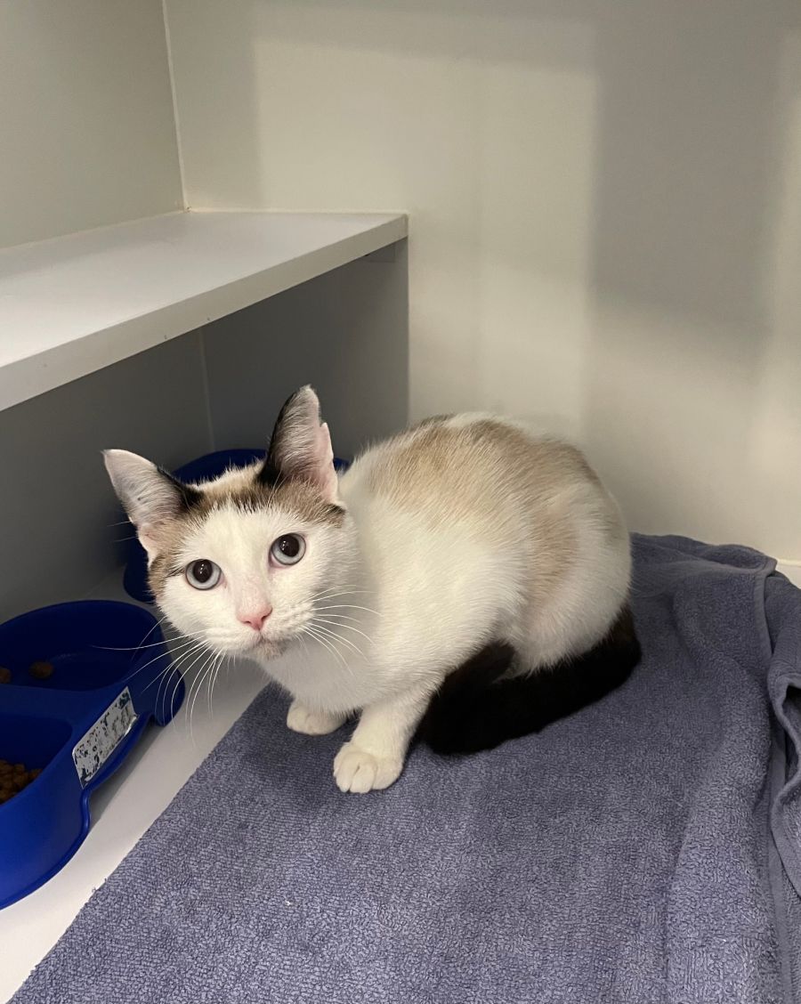 Just take a look at my beautiful blue eyes and my markings of that of a Snowshoe Cat, how can you resist? I am a petite, super sweet, slightly shy at first young teenager seeking a quiet home filled with love, and once you get to know me, you’ll see how much affection I have to give. I have been transferred from another agency so my history with other animals is unknown. Due to the fact I am a little shy and I have a fair complexion it would be best I live indoors only. Please don an online expression of interest or hone the Adoption Centre to meet me.