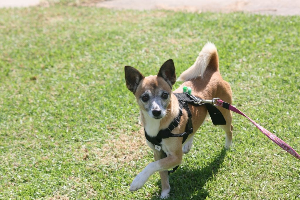 he is a chuhuahua crossed with something a bit taller. He was a little scared to start with but has adjusted really well. He is great with other dogs and kids. Possum loves his walks. He is house trained, and a nice little dog