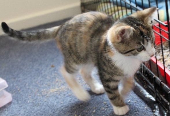 Grace is a sweet, friendly, pretty, sociable and playful young lady. She is affectionate and cuddly but isnt clingy. She enjoys playing with her fishing rod mouse and leaps enthusiastically after it. She is a lovely kitty and will make a great addition to most households. She is currently living with her brother, sister, an adult cat and a dog