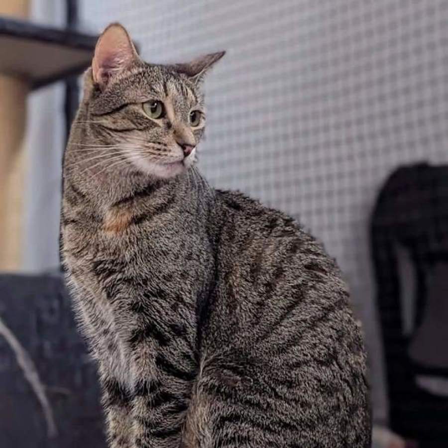Mittens may look sad but in reality, she is a calm, gentle, and loving cat. If you sit with her and give her all of the pats, you can she will be the happiest cat in the world! She doesn’t particularly enjoy being with other cats, so if you’re looking for a calm and independent cat Mitten’s is the perfect choice!