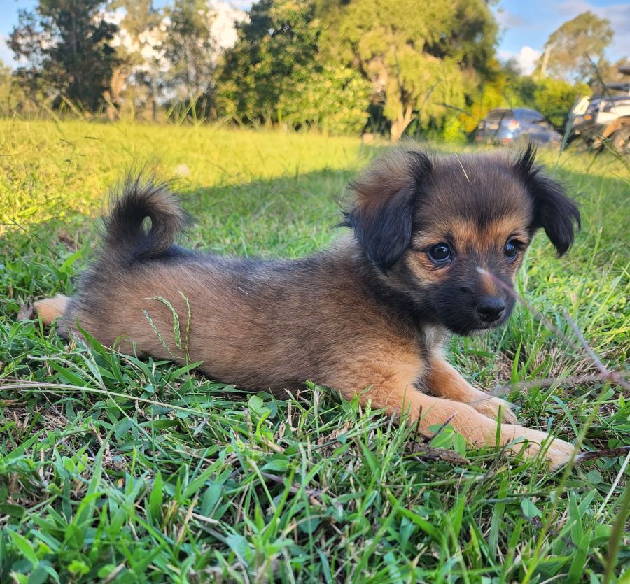 We do not know our dad but it could be one of the many breeds that came into care (Silky Terrier x Long haired dachshund, Tibetan Spaniel, Chihuahua or Mini Foxie)