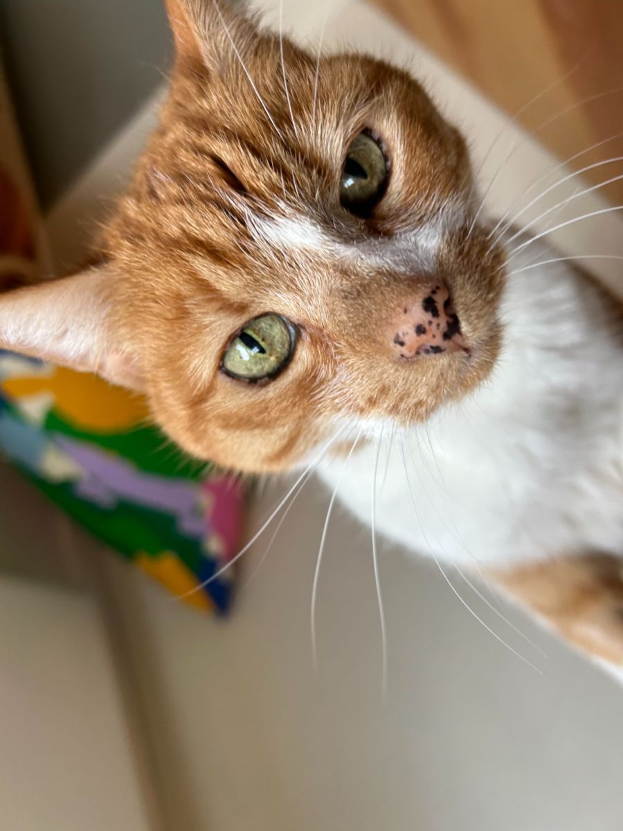 Ginger and white fur, emerald green eyes and a spotty nose?! Mandy has this years "Most Beautiful Cat" award in the bag, no doubt!