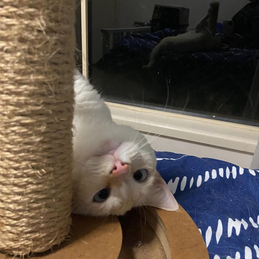 I must have been a baker in my past life as I'm constantly making cookies. When I'm sitting on your lap, I'm making cookies; if I'm looking out the window I'm making cookies; when eating my biscuits I'm making cookies. I could nearly start my own bakery at this point. I have a quirky habit of being upside down too.