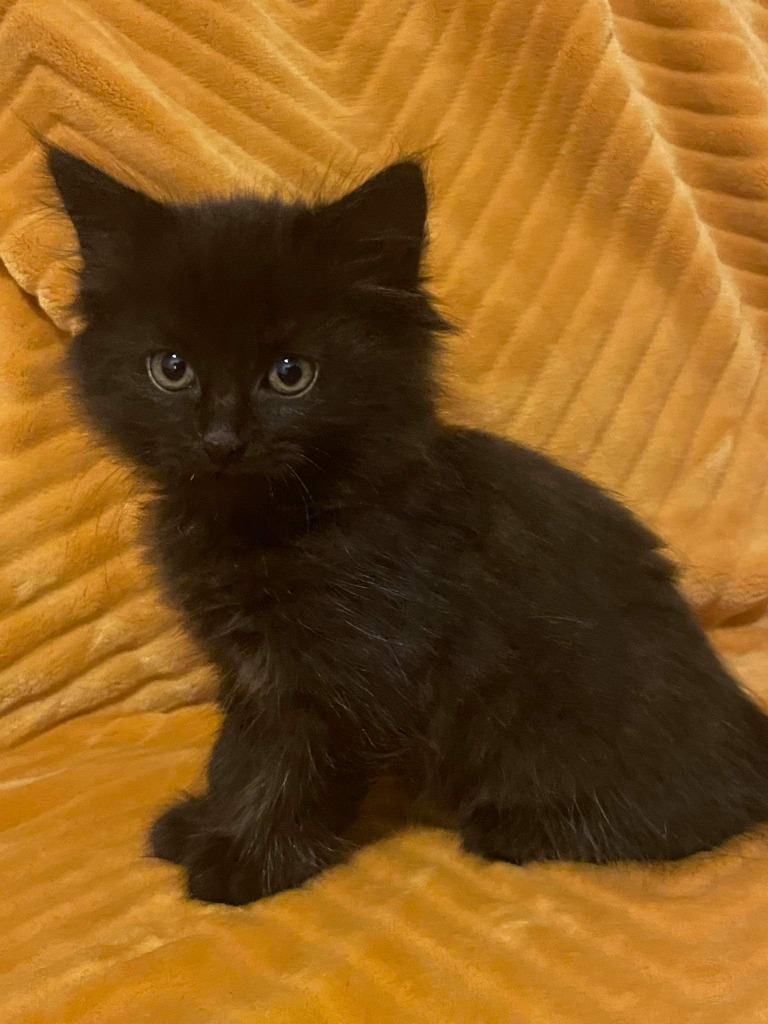 HC2979 Yoru, which means "night", is a very fluffy boy, who has such dark fur you almost miss the beautiful mottled tabby markings. Take him in the sunshine and you can see the phantom pattern, and he has speckles of white hairs like stars on his legs!