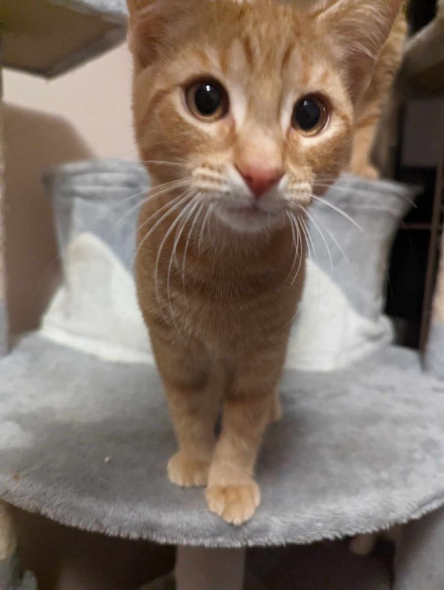 Meet Pickle: a bundle of sweet, affectionate energy with a personality as vibrant as their crazy orange fur. Well-known amongst us for their incredibly loud, soothing purr, Pickle is undeniably a cat that radiates positivity and is always ready for some fun.