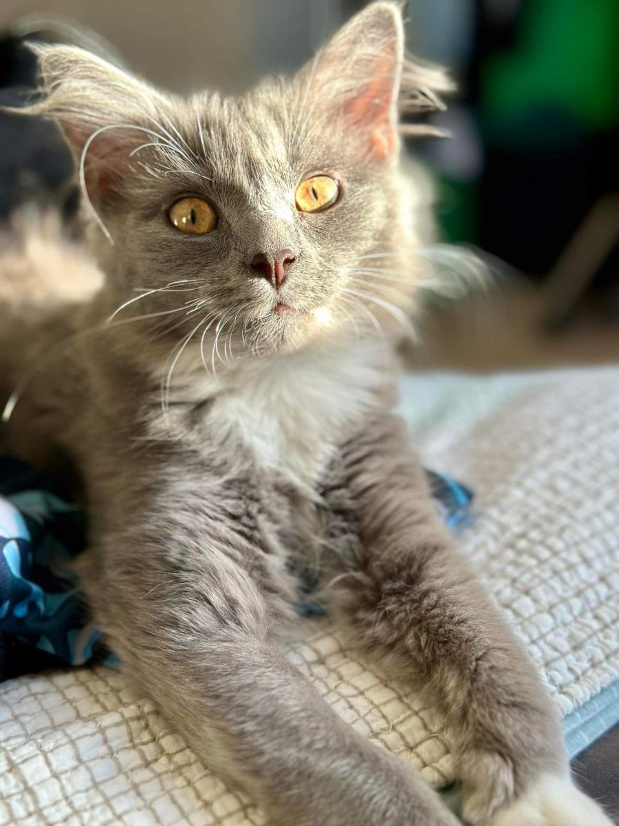 When meeting new people or animals he doesn’t have the weariness most kittens at this age would. Making sure his first encounters are safe and always supervised.