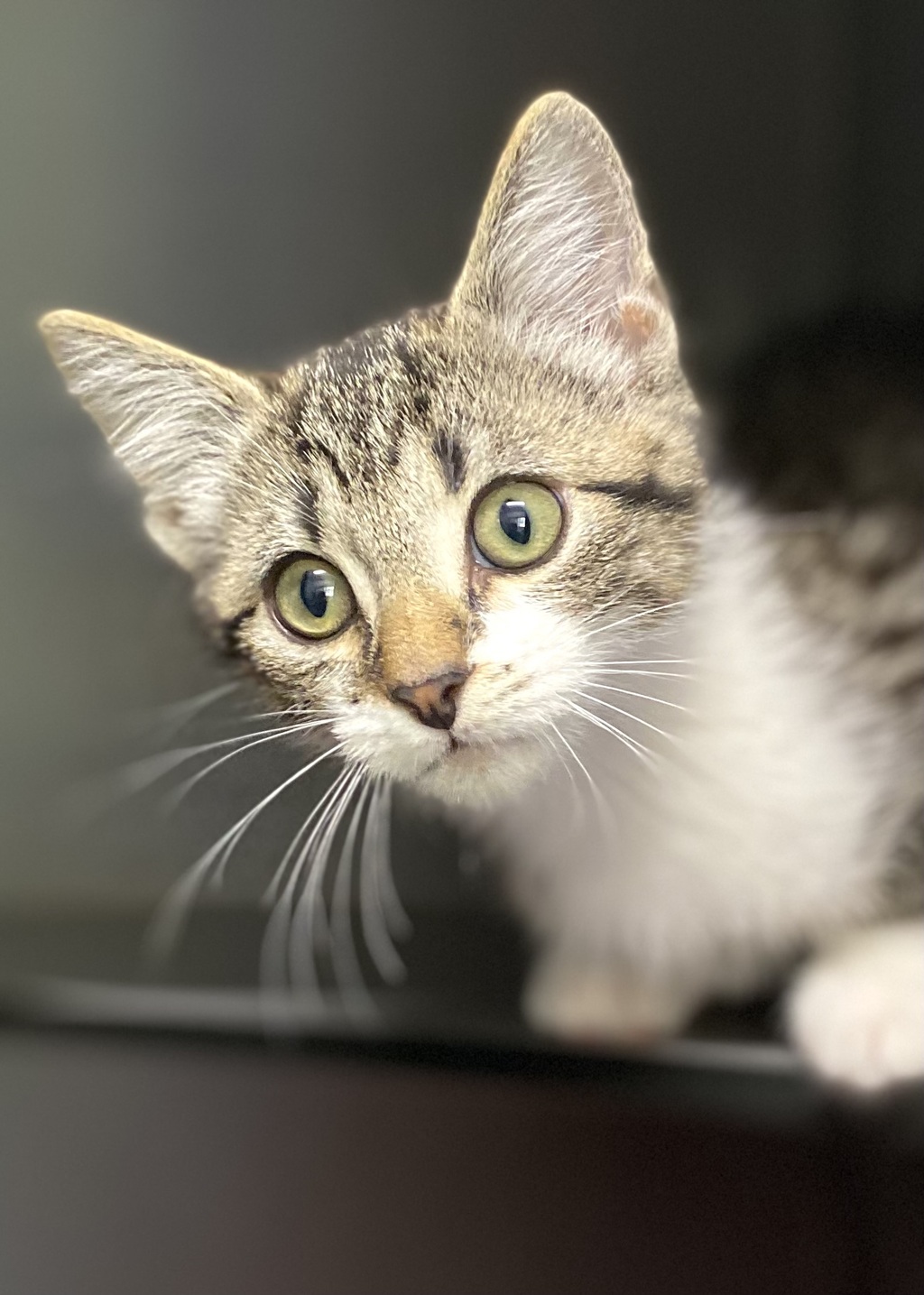 Braum is an incredibly energetic and inquisitive kitten. With his youthful energy and curiosity there is nothing that will go unexplored or untouched. This may result in the occasional thing being knocked over or broken but Braum hopes his newfound family will be accepting and accommodating of that. Braum is still learning how to play with others so may not suit a house where he has to share the space with other/ less tolerant pets. Also given the things he has already had to go through in his life he is still learning that people won't hurt him. Braum will need a soft approach and a launch room to become acquainted with his new home and family, soft voices and allowing him to approach at first will result in a loving companion that will want to enjoy the comforts of home with you.