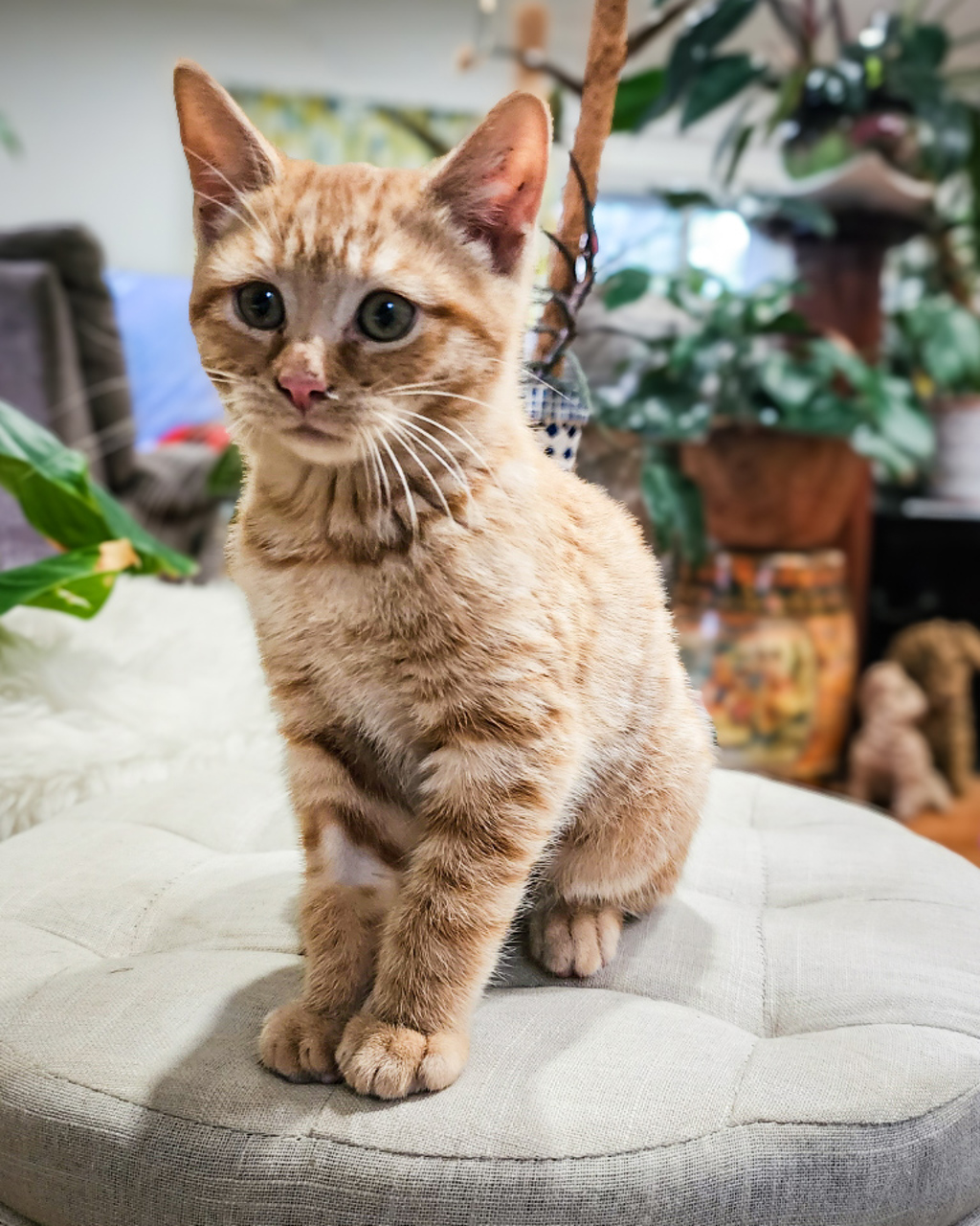 Imani is that most elusive of ginger cats, a female ginger. This sweet girl was rescued with her brothers from a garbage bin. She's quite shy when she first meets you but in no time is following you around the house looking for hugs.