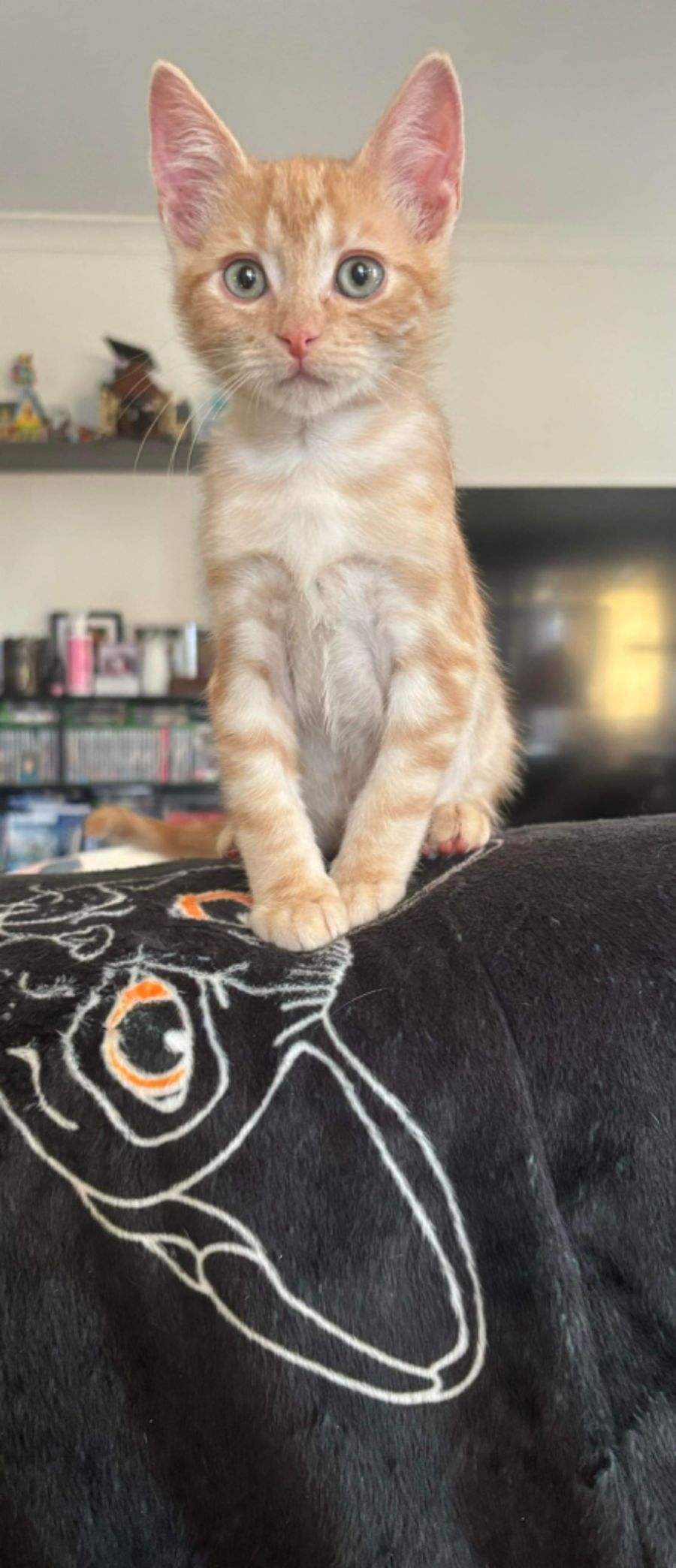 Playful and exuberant, Sam's 'Ginger Ninja' nickname isn't just for show. If you're looking for a companion to add some zest to your life, you've found the right one. He can play for hours on end, bringing fun and laughter into your home. Fearless and adventurous, Sam is unfazed by new faces, loud noises or other animals – be it cats, dogs, or anything in between. This fearless attitude makes him stand out, making him perfect for a family with a lively household.