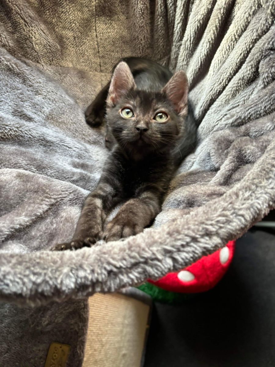 Despite his early challenges, Dnozo has emerged stronger and happier. As the most tenacious of his siblings, all of whom needed to be bottle-fed when they were tiny, Dnozo has grown into a strong and content pet. His love for food has remained insatiable, and he holds no dietary restrictions. This happy stealth-food-snatcher will joyfully make your day every day!