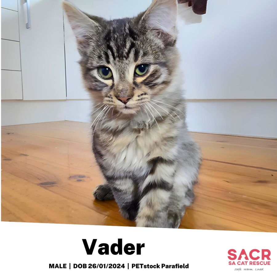 Vader’s adoption fee is $180 which includes desexing, microchipping, parasite prevention, and initial F3 vaccination.