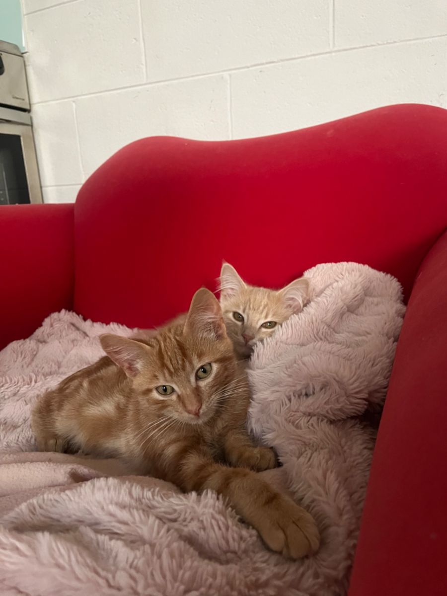 Fred and George are a bonded pair! Adoption fee $600. these two boys are absolutely complete each other and would love to stay together if possible. Fred (lighter) is the leader of the two and has helped George (darker) find his way in the world. They both erupt with purrs the second they see you and love a pat. They can come off as quite shy but are truly so sweet once they are comfortable and feel safe enough to show there love. They are both quiet little boys and spend most of there days lying in the sunshine or next to you on the couch. They have the crazy moments of playfulness but just spend most of there day lounging and purring. These two would be best suited in a home with no young kids to match there Cruisy lifestyle. Are fine around other cats and calmer dogs.