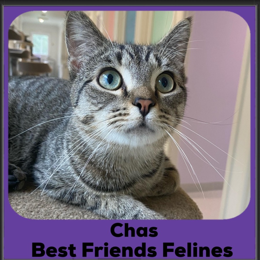Medical Note: Chas came into care with Radial nerve paralysis in his front right leg. This has continued to improve while in care, and although he will likely have some minor deficit, he is able to live life as a normal fun kitty.