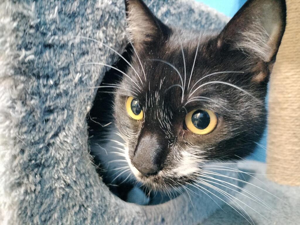 Onyx is the type of cat that likes to sit in quiet and watch the goings of the world. He doesn't want to be the center of attention and he doesn't want to be constantly handled. he very much enjoys the comfort that comes with a peaceful environment. Despite that Onyx is a very gentle cat, he wont lash out when uncomfortable, instead opting to try and leave the situation or area to retreat somewhere more quiet. He does want to be loved and enjoys a good pat but he wants the affection on his terms rather then them being forced on him. He would make a great companion for quieter homes that don't have other pets that could get to him in his quiet spots.
