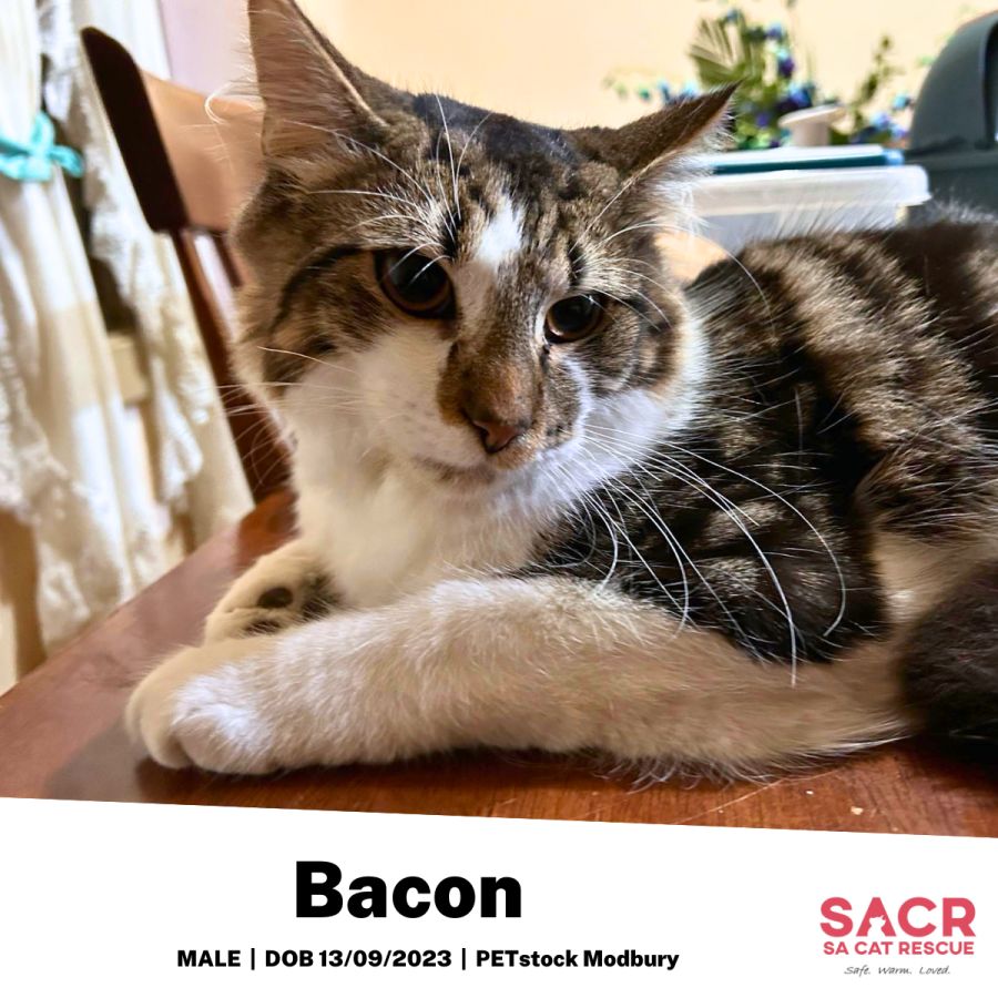 Meet Bacon, whose charm and soft, silky tail are as mesmerising as his name is appetising. This beautiful furball unlocks a new level of gentleness, making him a total heart-melter. Oftentimes shy, Bacon's timid nature requires patience and encouragement, but once he warms up to you, he showers you with love and companionship.