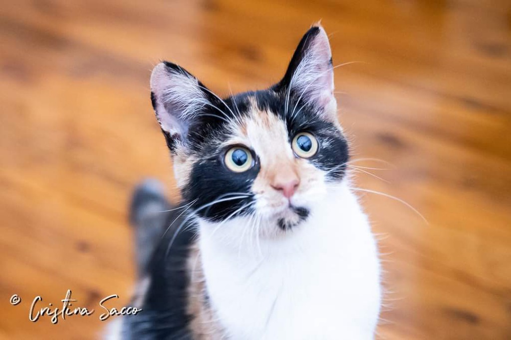 Loretta is very proficient at playing as well - her favourite toy is her cat tunnel, and she will spend hours running back and forth through it until she is so tired she falls asleep right there in the middle of the tunnel! She is also very fond of toys she can chase - a ball on a piece of string makes for hours of fun! But Loretta's most favourite pastime is following her foster humans around, watching what they are doing and yelling at them with the most adorable, teeny-tiny squeak, in the hopes she might get some cuddles. Loretta is the most beautiful, snuggly and loving little lady who can't wait to find her forever cuddle-buddies!