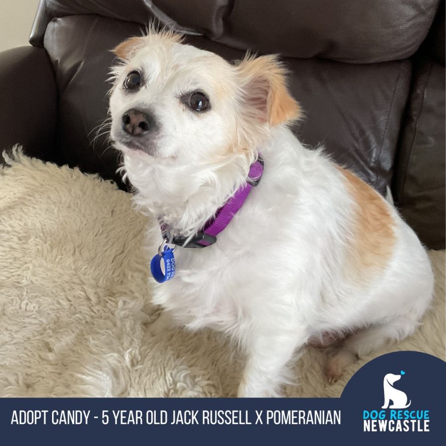 Candy is a loving, 5yo, Jack Russell Terrier x Pomeranian. She is dreaming of a home where she can sit on someone’s lap and go for a little walk each day. She adores people and gets along well with other dogs. 🍭