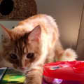 Sanaa is simply a gorgeous kitten. She is a rare female dark ginger tabby, and her good looks match her loving personality. Her inner sweetness is reflected in all her actions, whether she's graciously accepting strokes and cuddles, or being a little cheeky with playful looks. You can expect her to reward your attention with undivided affection, showing you with a little nudge of that little lion paw that she is ready for some love and cuddles.