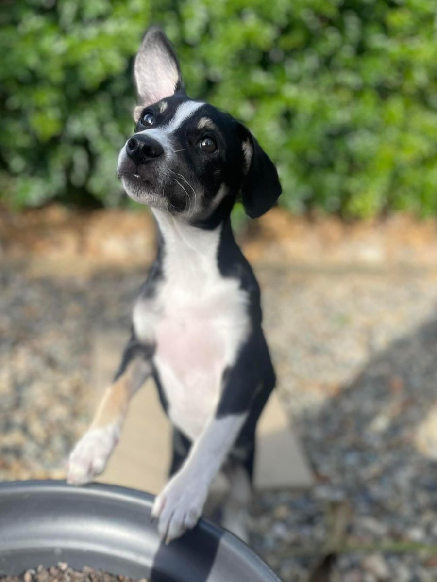 I’m a happy go lucky pup who loves playing with toys and my fur foster siblings. I’ve always been around other dogs so a doggie friend in my new home would be awesome. Snuggling on your lap and cuddling in bed are also high on my list as I’m very affectionate and love people.