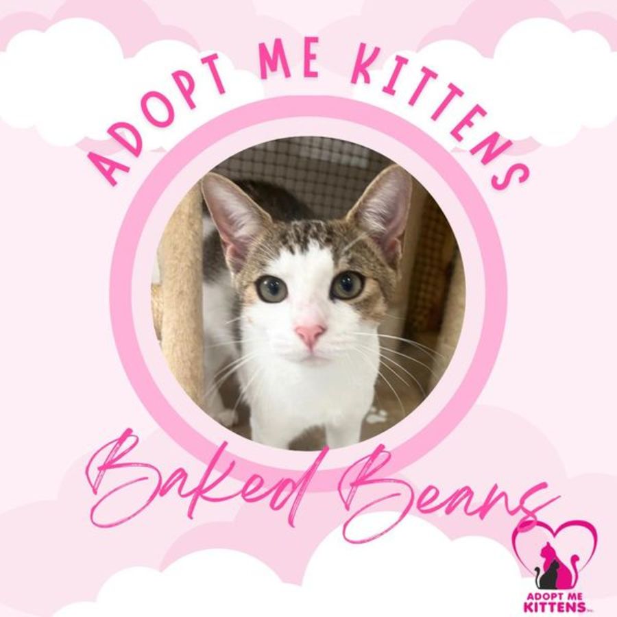 Baked Beans is an exceptionally sweet and gentle little girl. She’s used to being around cats and is in care with her sister and brothers.