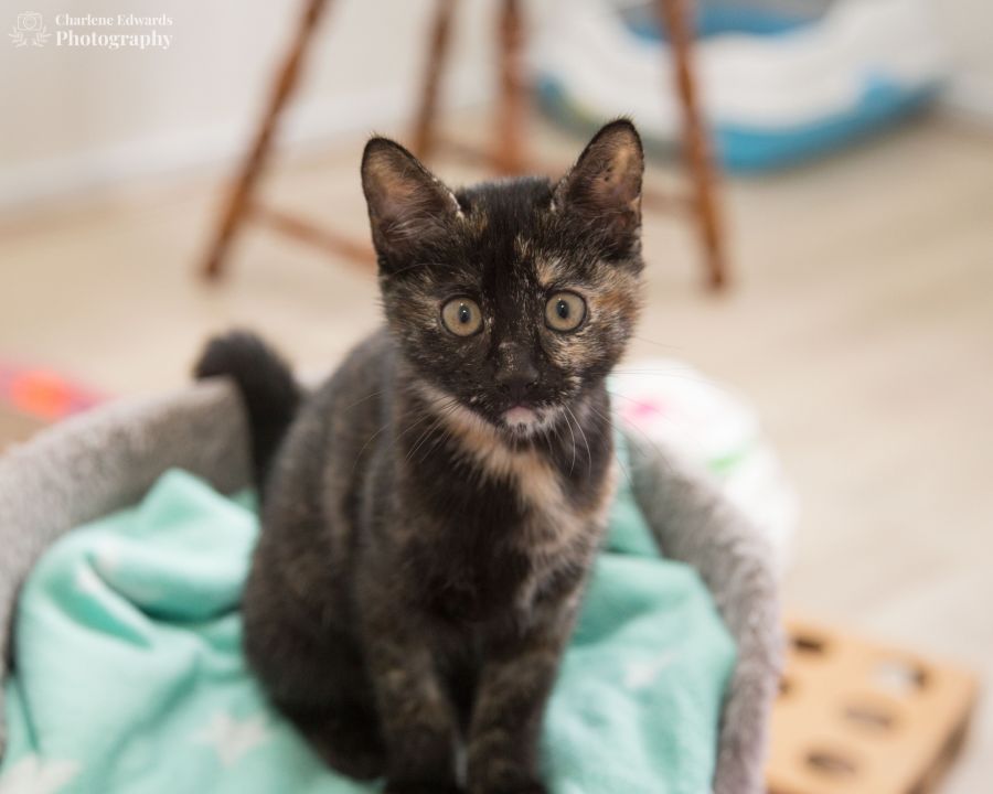 Penny is a typical 'naughty torti' with her big personality and playfulness but is also very cuddly due to her being hand raised. She is a sweetheart who will keep you entertained.