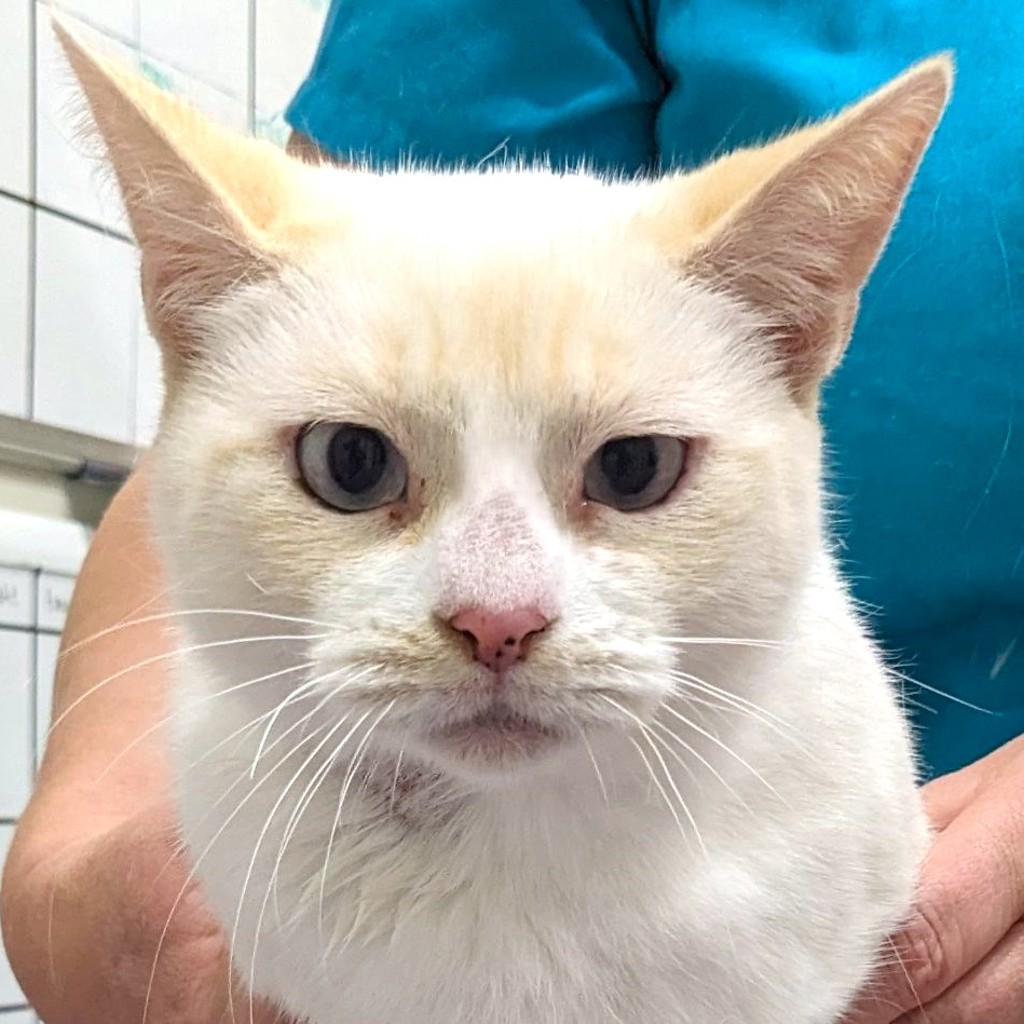 JENNY #719C came in as a stray so we don't know her history but she definitely looks like she has some oriental breed in her. She has a lovely cream coat with light red points and startling pale blue eyes. She is quite a shy girl and takes time to warm up to people but once she gets to know you she is very affectionate and loving. We think she is about four years old. Jenny is desexed, microchipped, vaccinated, worm/flea treated and vet checked.