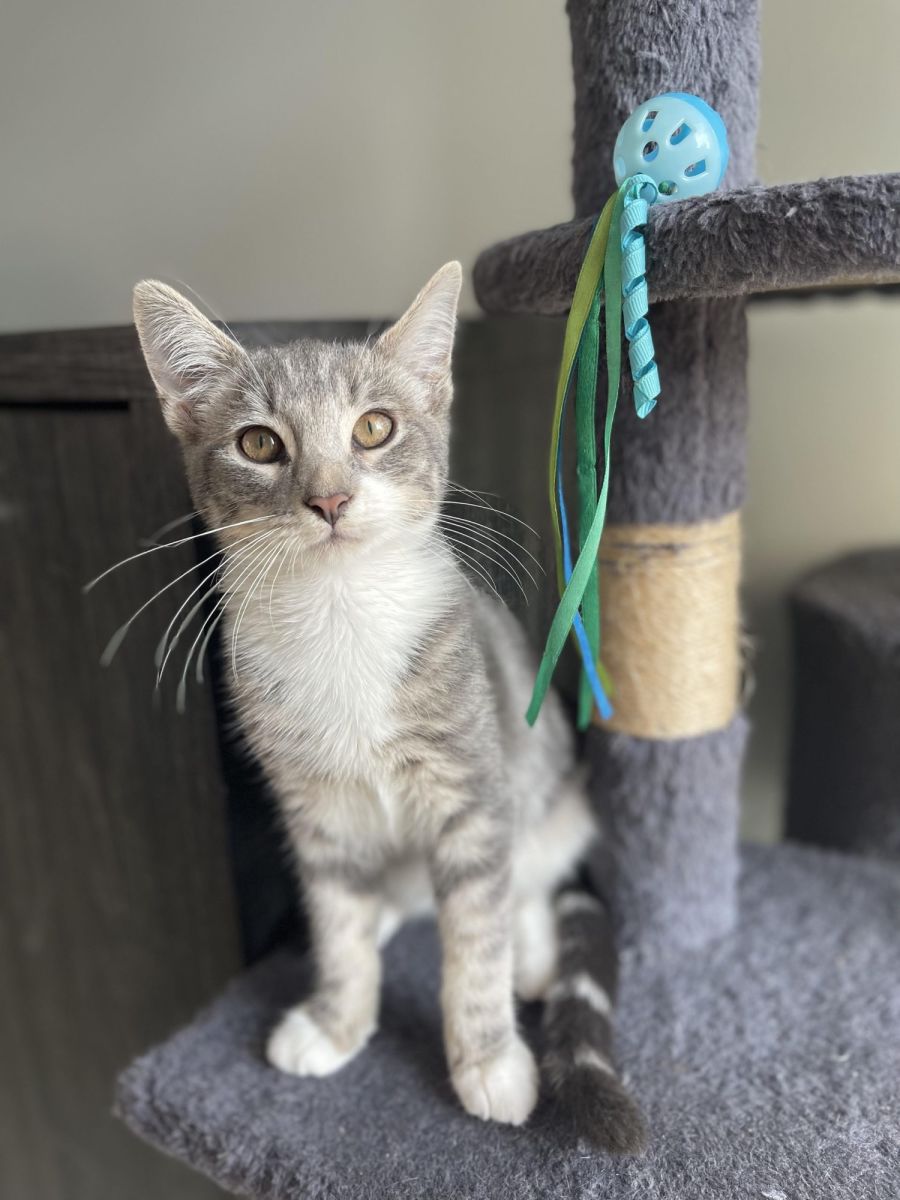 Sky is an adorable kitten who will steal your heart with just a purr. This playful kitten may start off a bit shy, but once you earn his trust, he’ll be by your side, ready to pounce into fun adventures together. Sky has a soft spot for belly scratches that will have him rolling over in delight, and nothing brings him more joy than snuggling up for a cozy cuddle session.