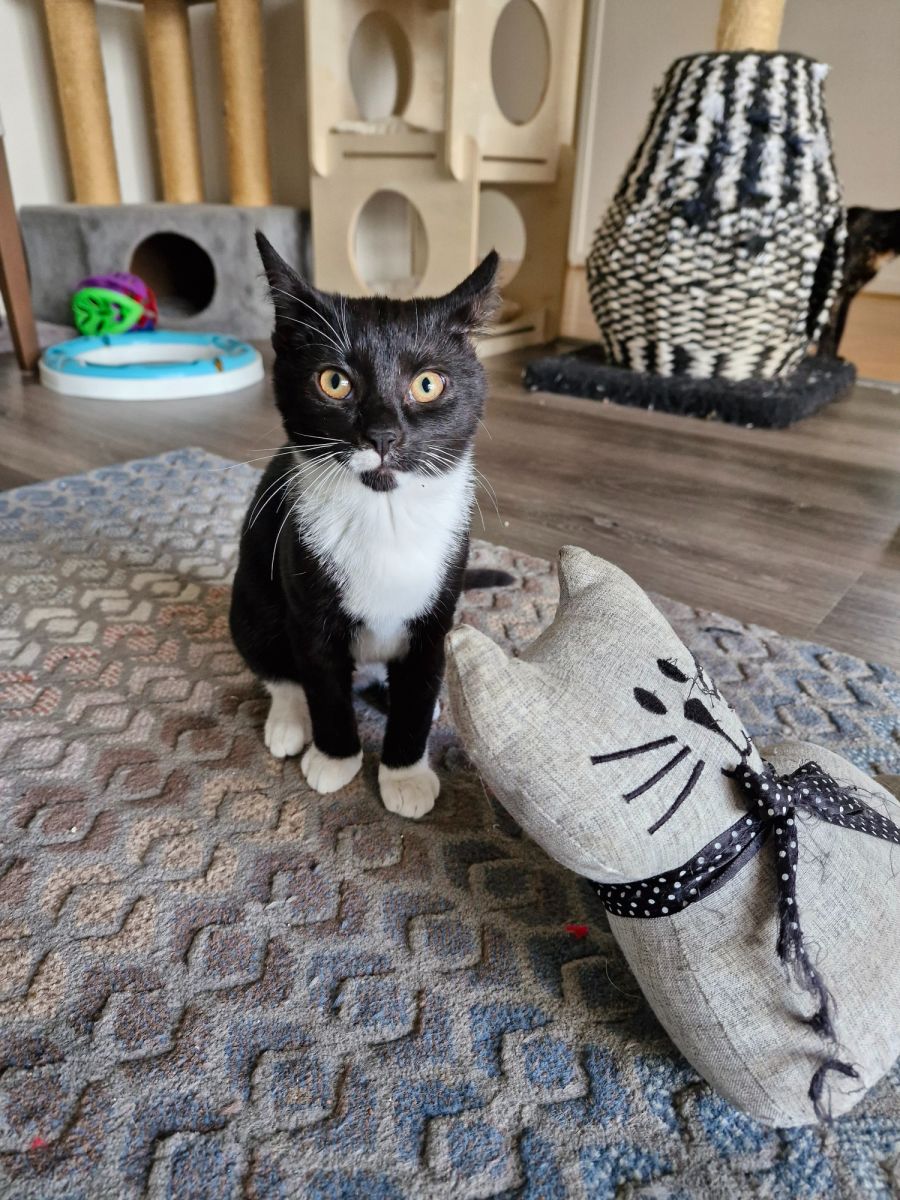Jana is an inquisitive kitten ready for a new adventure each day with her sisters - Florence and Betty - also available for adoption, but once the fun is had she happily snuggles on a warm lap to recharge before the next set of races!