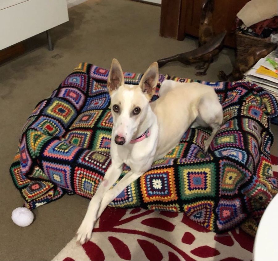 Please meet Maggie, a 2yo Whippet x greyhound with a beautiful gentle nature. She loves walks and cuddles, is quite playful.