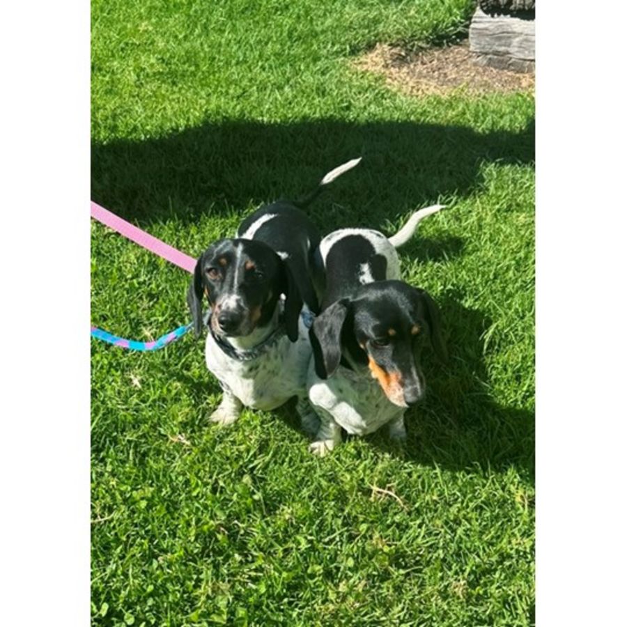 Aggie & Miffle are a bonded pair of sister Dachshunds. They are initially shy and do take some time to warm up.