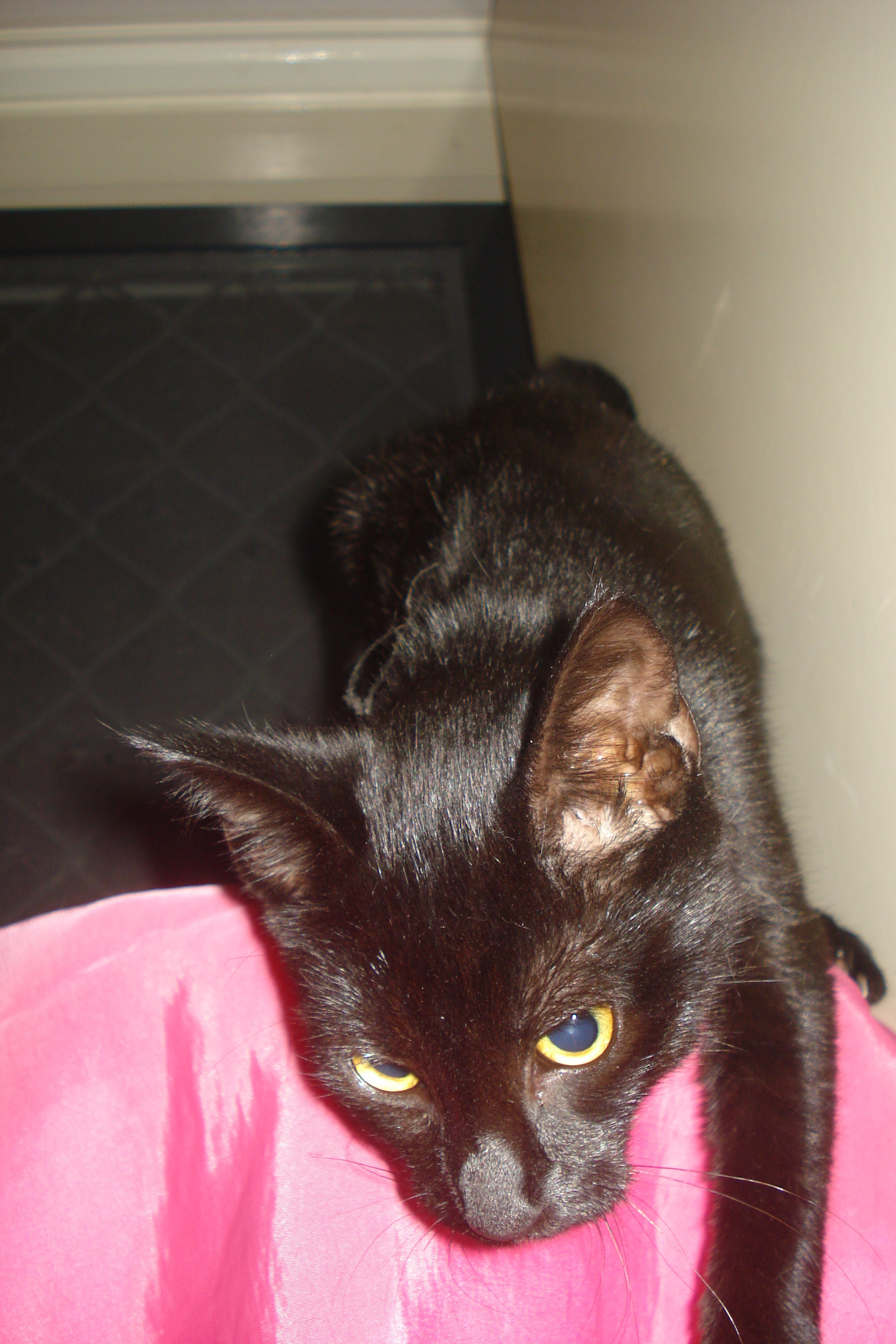 i have great markings on my coat, i am pitch black and have a striking exotic looking face. My eyes are striking, and are as big and round as saucers!