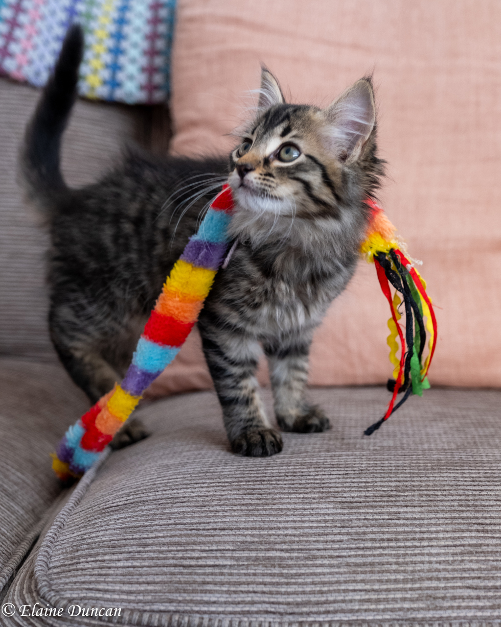 Little Pugsley's favourite thing to do is play, play and more play! He likes to jump at dangly, wiggly toys and loves chasing the laser dot. He has lots of energy, enjoys chasing and being chased, is super speedy and will absolutely be in the middle of any action within his foster home as happy as a pig in mud. Pugsley is strong and fearless, an accomplished climber and enthusiastic eater.
