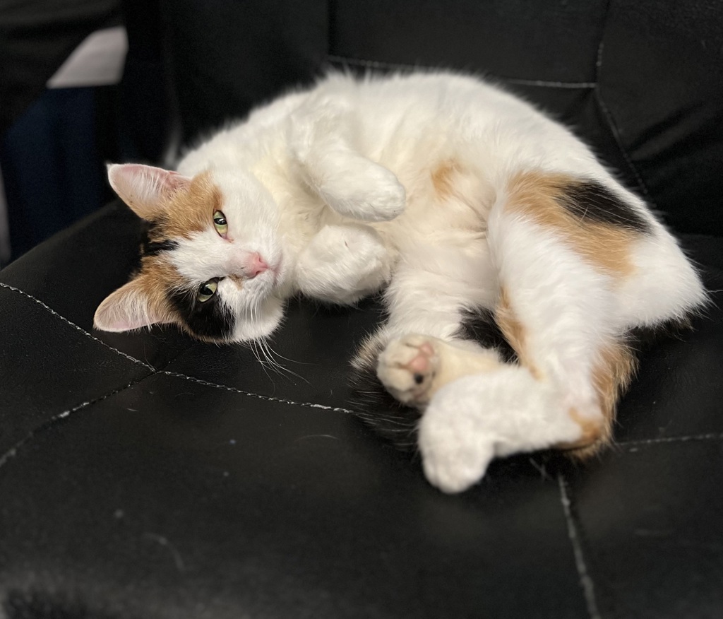Cat whose gentle soul and loving nature are as comforting as a warm hug. Having lost her beloved owner, Henrietta is now seeking a new forever family to share her boundless affection with. Known for her incredibly cuddly demeanor, Henrietta has also become an invaluable member of our office team, bringing joy and companionship to all who cross her path. With her comforting presence and unwavering loyalty, Henrietta is more than just a pet; she's a cherished companion ready to fill her new home with love and companionship. If you're searching for a furry friend to brighten your days and warm your heart, Henrietta is eagerly awaiting to become the purrfect addition to your family.