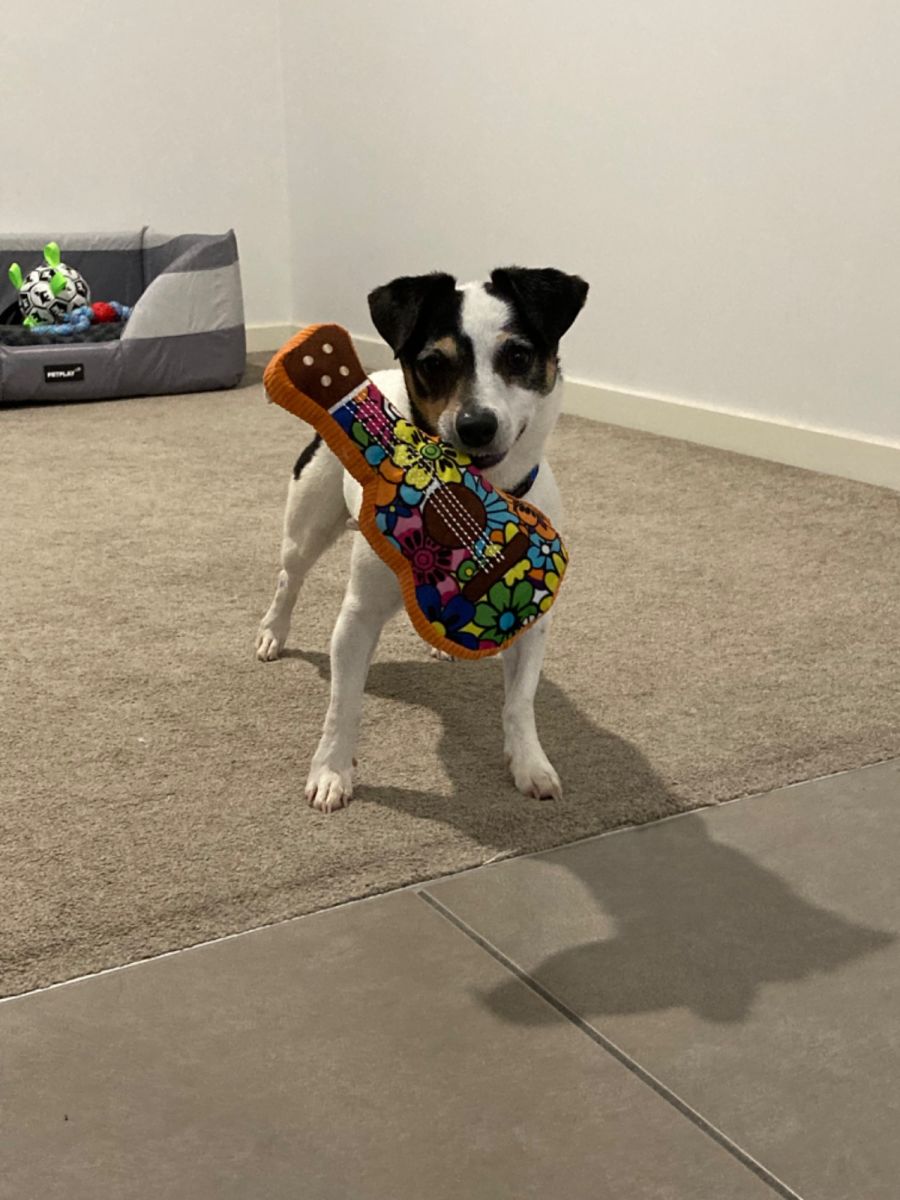 Loves playing fetch with a ball. In the house he’s calm and doesn’t bark. A bit selective towards other dogs, some he likes to say hello to, some he’s rude to.