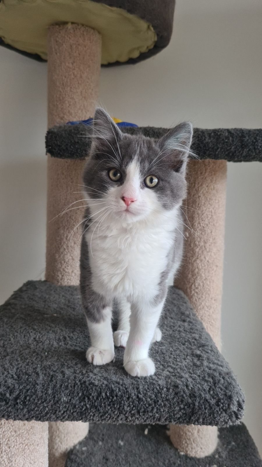 I'm a very handsome grey and white fella who had a bit of a rough start to life (not that I remember). Me and my three siblings were found in someone's backyard when we were just a few days old, and our mum was nowhere to be seen.
